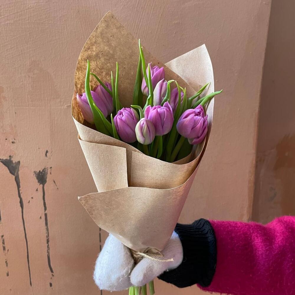 Крафтовая упаковка - 1 шт.сиреневый пионовидный тюльпан - 9 шт.